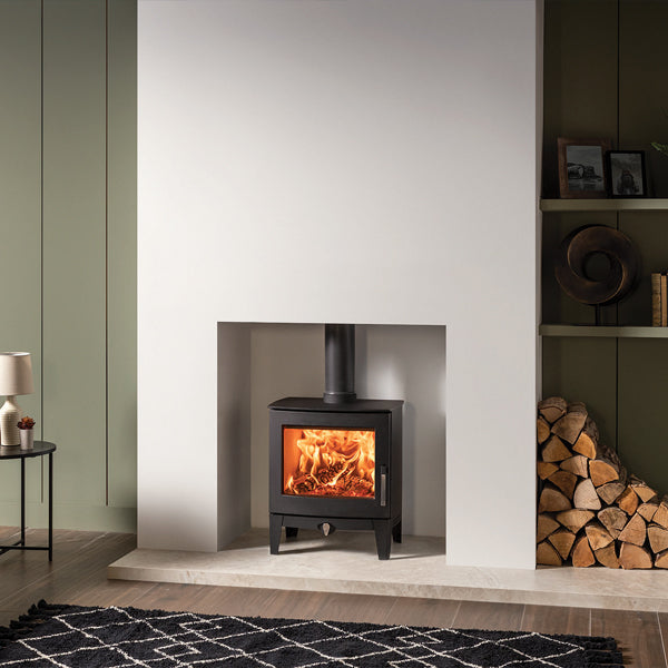 Transform your living space with the sleek and sophisticated Stovax Futura 5 Woodburning Eco Stove. This modern stove not only heats your home efficiently but also adds a touch of contemporary elegance to any room. With its high efficiency of up to 80%, you'll enjoy cozy warmth while reducing energy costs. Imagine a clear, mesmerizing view of the flames through the clean glass maintained by the Cleanburn Airwash System.